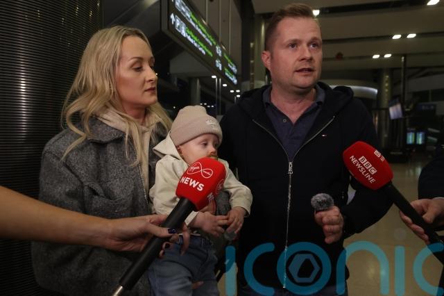 Dympna Mackin, from Mayobridge, Co Down, who had been in Dubai with her husband to celebrate her 40th birthday, walked through arrivals to hugs from family waiting to see her.