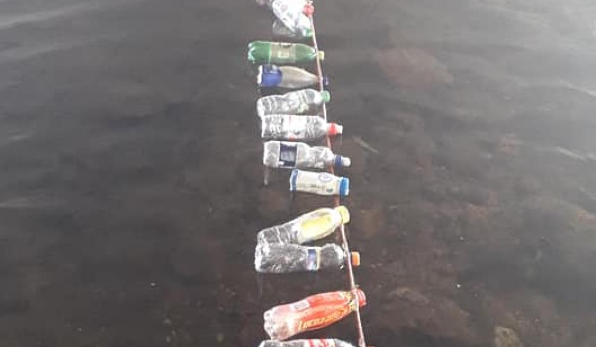 Local volunteer, Eugene Walsh, placed a "can and bottle" trap on the River Burrin "to stop the litter going down stream and it works great".