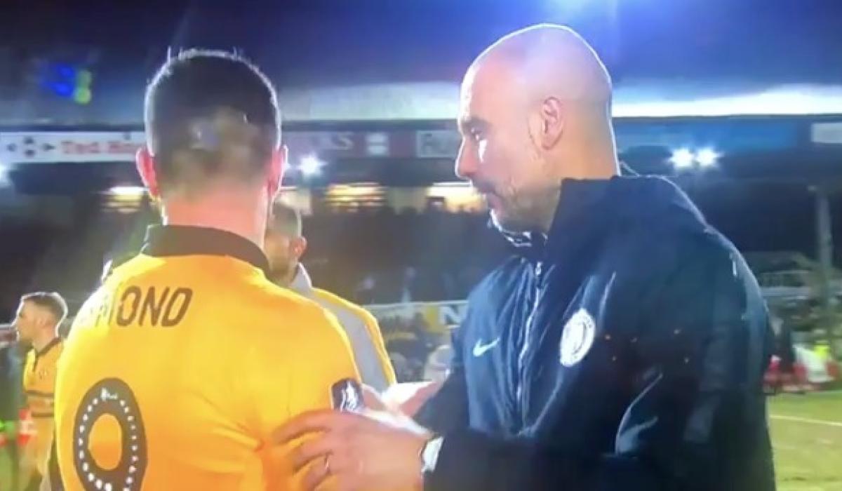 Carlow's Pádraig Amond received some compliments from Manchester City manager, Pep Guardiola, after the Newport County striker scored against the Premier League champions on Saturday.